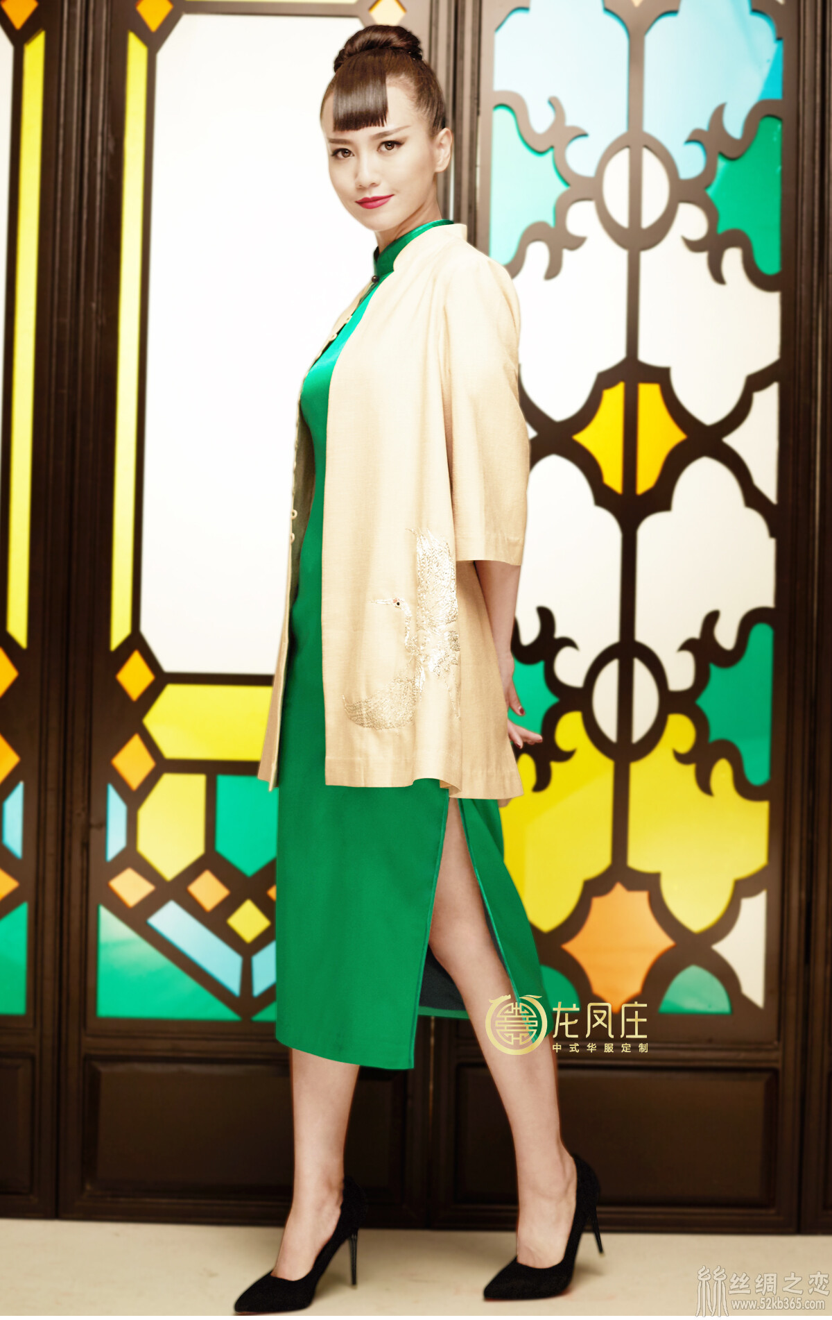 52kb365 【春晓】女子身着绿色的旗袍,外搭配米白色的仙鹤刺绣外套 fd2d8c14-e61f-4338-b812-0691064f43ea.jpg  丝绸物品爱好者 140808ufbkh6yf6fbsarl4